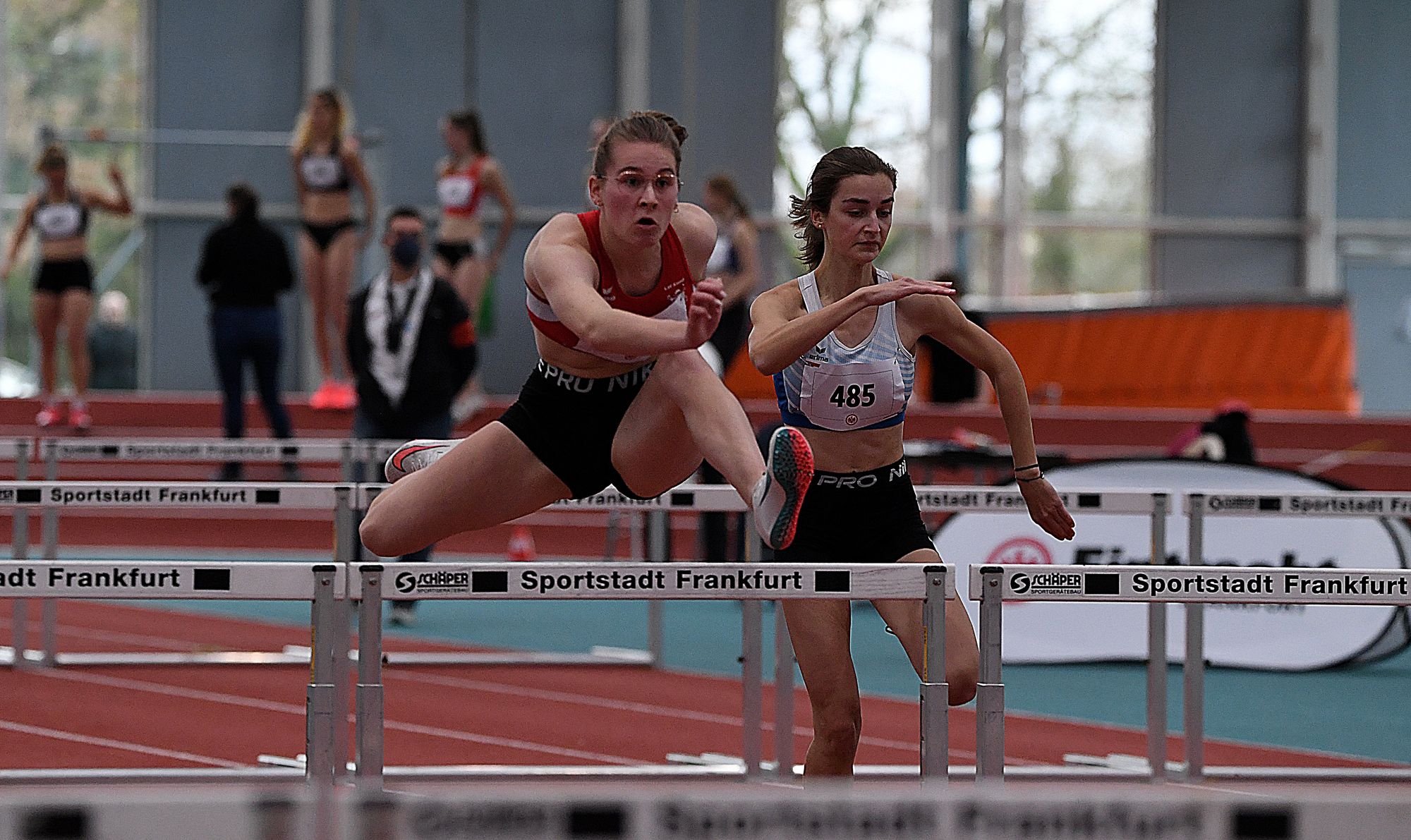 Auch die 200 Meter bei den Mädels der U18 waren eine Klasse für sich. Bundeskader-Sprinterin Holly Okuku (GSV Eintracht Baunatal) flitzte in hervorragenden 24,37 Sekunden um das Tartanoval und hätte mit dieser Top-Zeit sogar das Rennen der Frauen gewonnen! Ganz stark auch die 7,78 Sekunden von 60-Meter-Siegerin Josephine Otto (WLV). Alexandra Scharf (TV Gelnhausen) setzte sich über die 60 Meter Hürden in 8,72 Sekunden gegen Masha-Sol Gelitz (GSV Eintracht Baunatal/8,86 sec.) durch und wurde beim Weitsprung (5,51 m) hinter Hannah Bayer (SG DJK Hattersheim/5,63 m) Zweite.