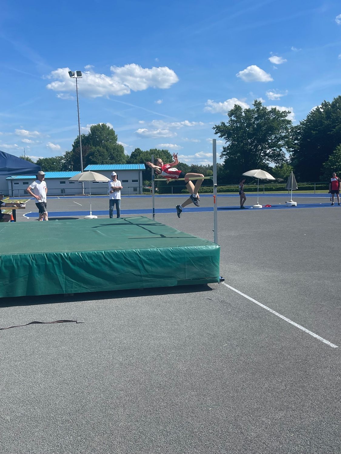 Bereits bei den Blockmehrkampfmeisterschaften in Hofgeismar hatte Newcomerin Hofmeyer, die erst in diesem Jahr mit Leichtathletiktraining begonnen hat, ihr Hochsprungtalent mit 1,44 Metern unter Beweis gestellt. In Obersuhl legte sie jetzt noch einen drauf. In einem spannenden Zweikampf im Finale der weiblichen Jugend W14 trieben sich Hofmeyer und Benja Schackert (Remsfeld) gegenseitig zu neuen Besthöhen. Die entscheidende Situation gab es 1,47 Meter. Schackert war im zweiten Versuch erfolgreich und setze Hofmeyer, die zwei Mal riss unter Druck. Im letzten Versuch schwang sie sich noch über die Latte und blieb im Wettkampf. Mit der neuen Bestmarke im Rücken lief sie mutig zur nächsten Höhe an und überwand die 1,50 Meter ohne Berührung im ersten Versuch. Schackert war geschockt und konnte nicht mehr kontern, Hofmeyer hatte den Titel sicher.