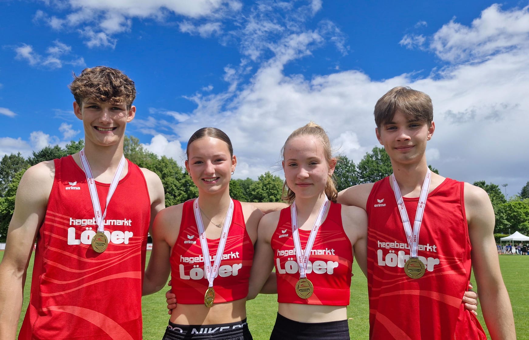 Im Vorfeld des Wettkampfs hatte die Mixed-Staffel mit einer Medaille geliebäugelt und von der DM-Norm (4:03 Minuten) geträumt, die angesichts der Vorjahresleistung von 4:11 Minuten jedoch kaum zu schaffen schien. Am Wettkampftag aber wuchs das von Mustafa Hallal trainierte und vor Ort von Alena Herrmann (beide TSG Hofgeismar) betreute Quartett über sich hinaus. In 3:53,36 Minuten verwiesen sie die Staffel der LG Bad Soden/Neuenhain mit drei Sekunden Rückstand auf Rang zwei und unterboten die Norm um fast zehn Sekunden. Damit treten sie im September in Sindelfingen zum Vergleich mit der nationalen Nachwuchselite an.