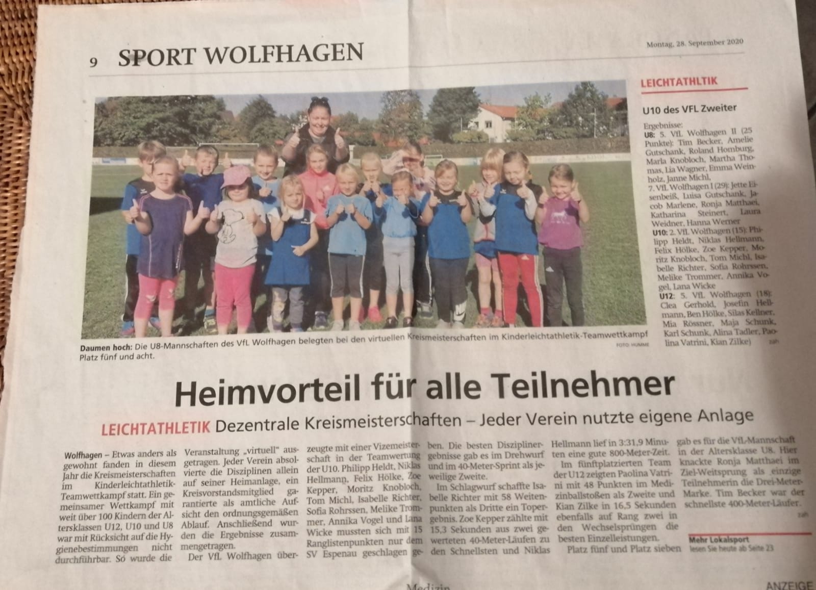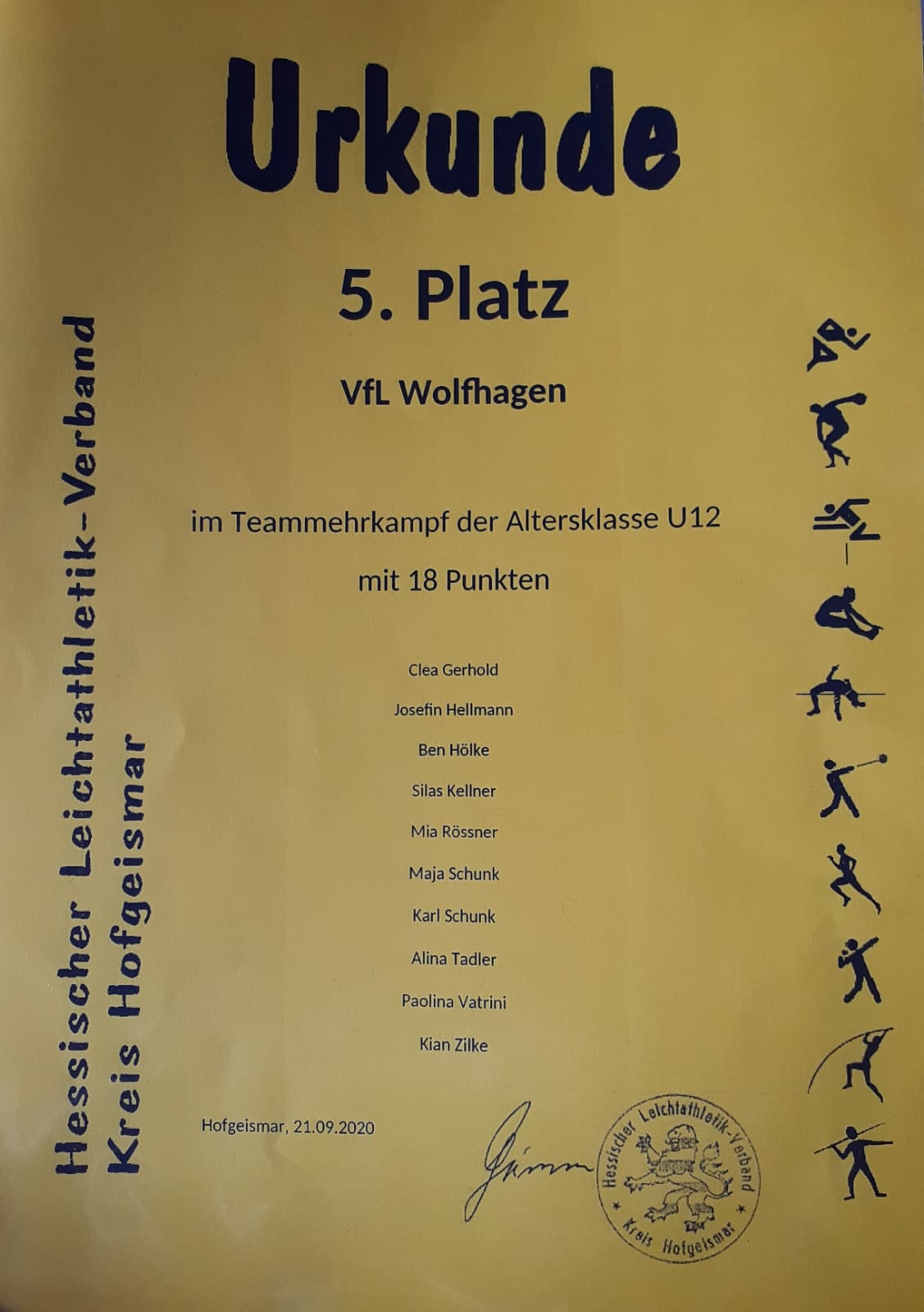 Nebenstehend finden sich einige Bilder von den Wettkampftagen, die Medaille und Urkunde, ein Zeitungsbericht sowie die Anleitung für den Bewegungswürfel. Hier der Link zum Video der dezentralen Kreismeisterschaften. Weitere Informationen zum VfL Wolfhagen können auf der Vereinshomepage nachgelesen werden.
