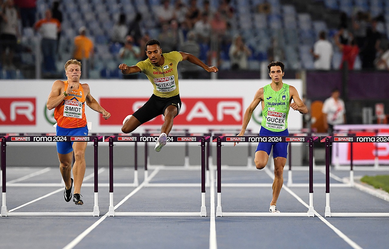 Sein erstes EM-Finale lief am Abend Emil Agyekum (400m Hürden). Mit einem mutigen Rennen belegte er, bei der Weltklasse-Show des Norwegers Karsten Warholm, einen starken sechsten Platz in 48,42 sek.