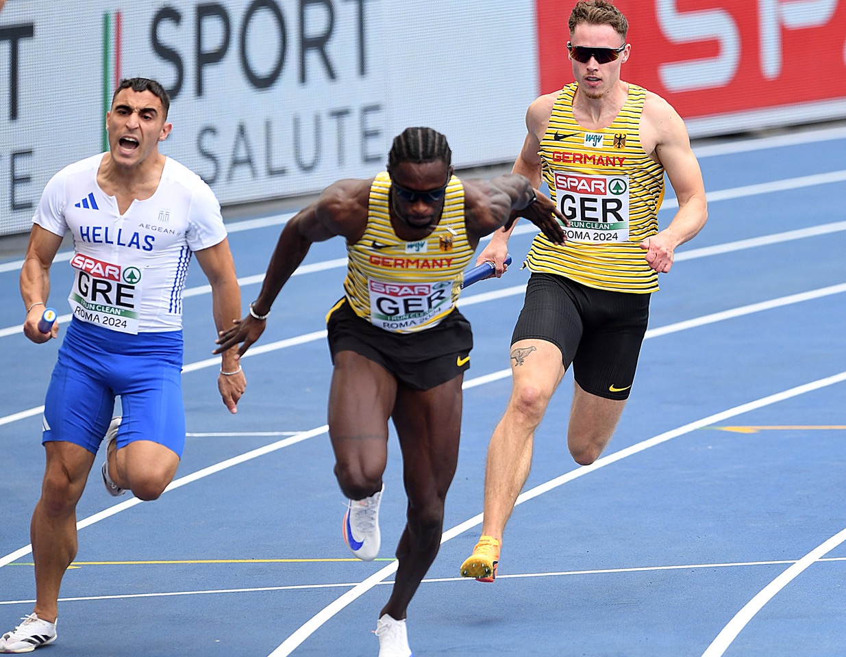 Bei den Sprintern über 4x100 Meter war Kevin Kranz (Sprintteam Wetzlar) wie immer auf seiner Stamm-Position unterwegs und lief die Staffel an. Er wechselte sicher auf Owen Ansah (Hamburger SV) Seine Staffelkollegen brachten das Holz sicher um die Bahn und gewannen in der Jahresbestzeit von 38,43 Sekunden ihren Lauf. Auch bei den Frauen lief es nach Plan, obwohl auf den beiden ersten Positionen „umgebaut“ werden musste. Sophia Junk hatte den Startpart übernommen und schickte dann Nele Jaworski auf die Reise. Danach folgten die „Stammkräfte“ Gina Lückenkemper (SCC Berlin) und auf der Zielgeraden Rebekka Haase (Sprintteam Wetzlar). Mit der Saisonbestmarke von 42,47 Sekunden war der dritte Platz und Final-Quali sicher. (JP)